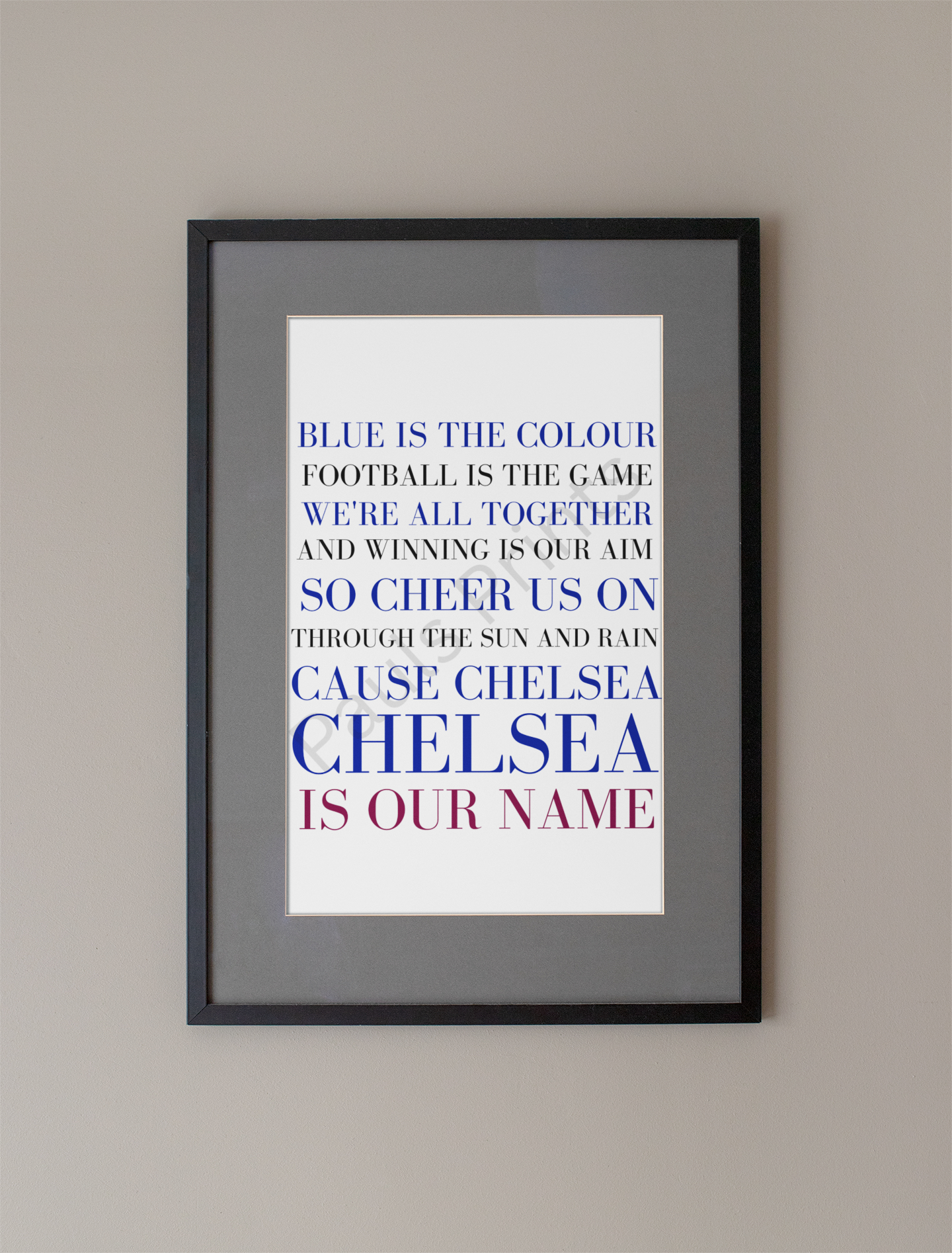 Chelsea Football Chant Typography Wall Art Print – Blue Is The Colour Chelsea Fan Poster