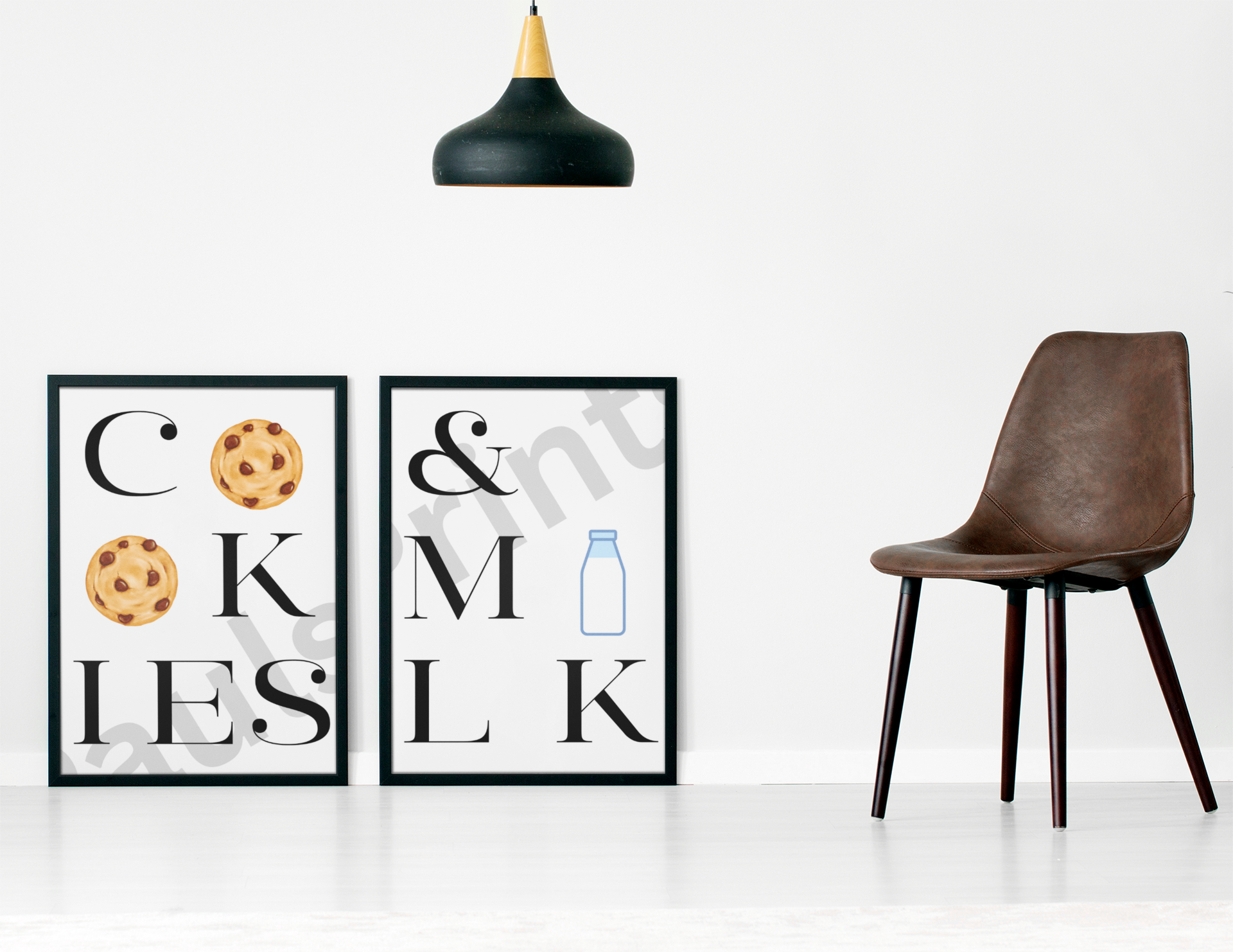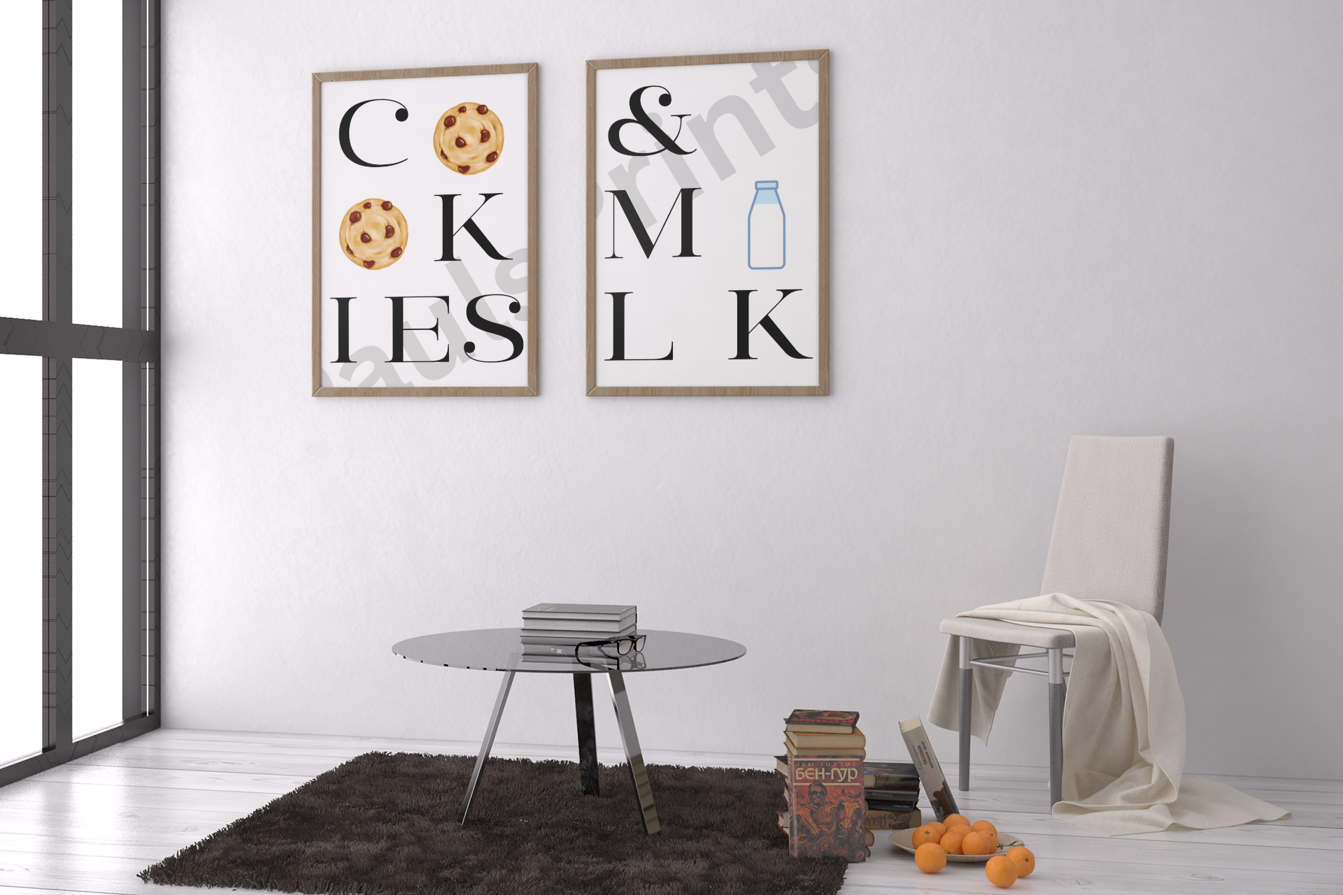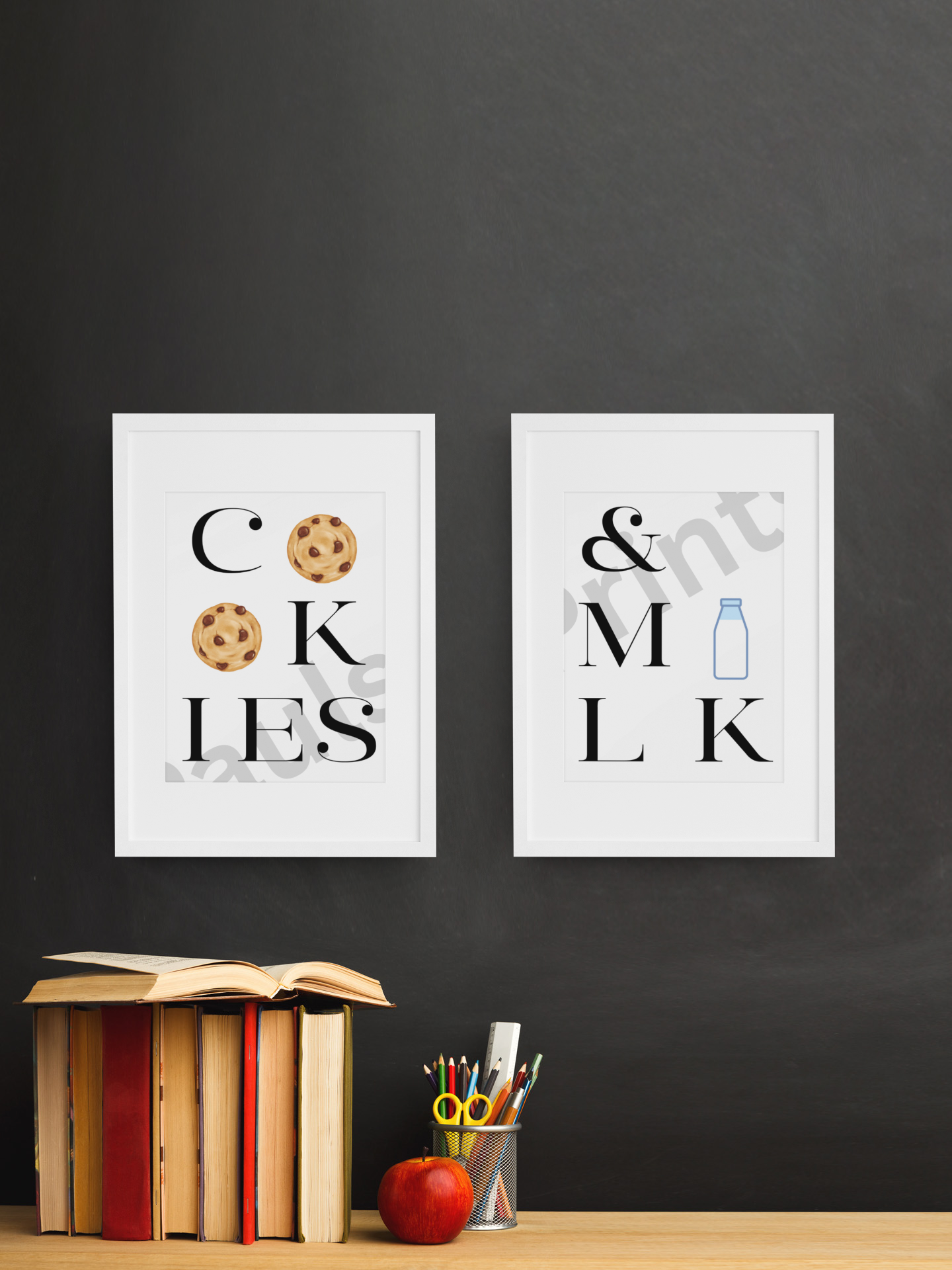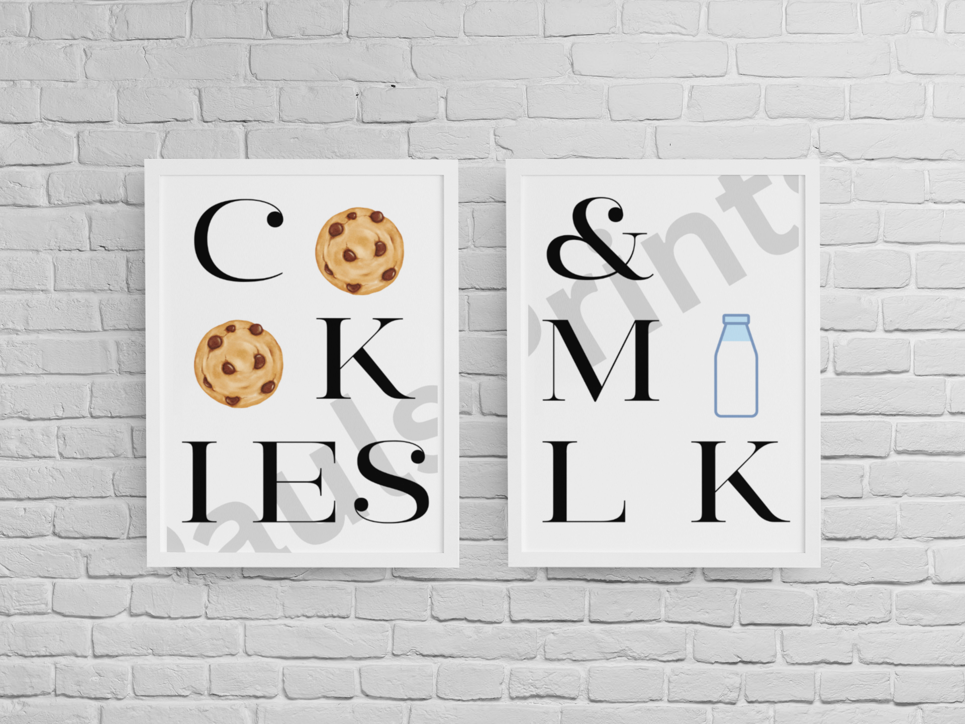 Add a playful and charming touch to your kitchen or dining area with this Cookies & Milk wall art set. Featuring bold typography, illustrated cookies, and a milk bottle, this two-piece design is perfect for food lovers and home bakers. Great for modern, rustic, or farmhouse-style kitchens, this set brings warmth and personality to your space.