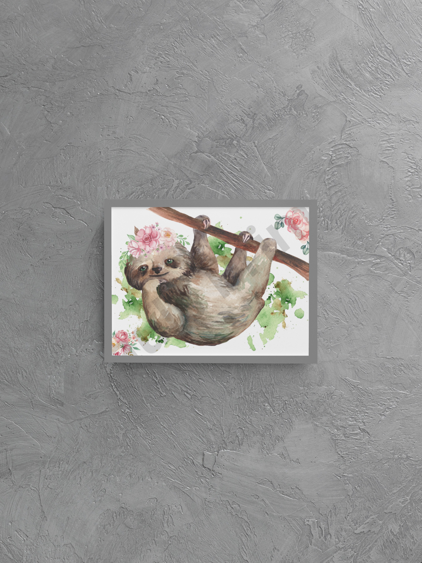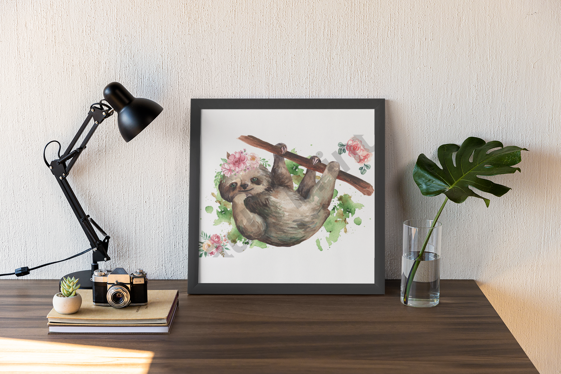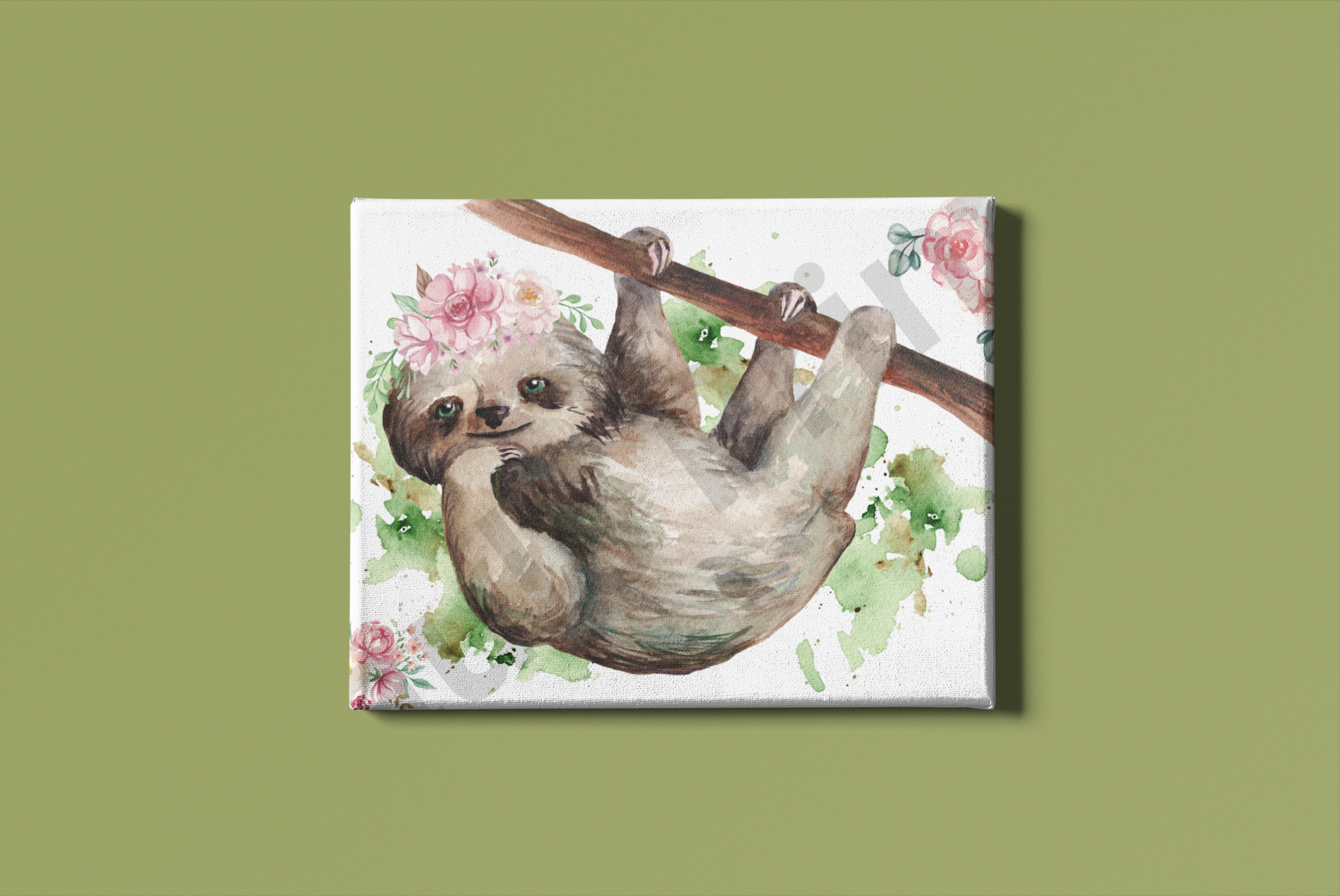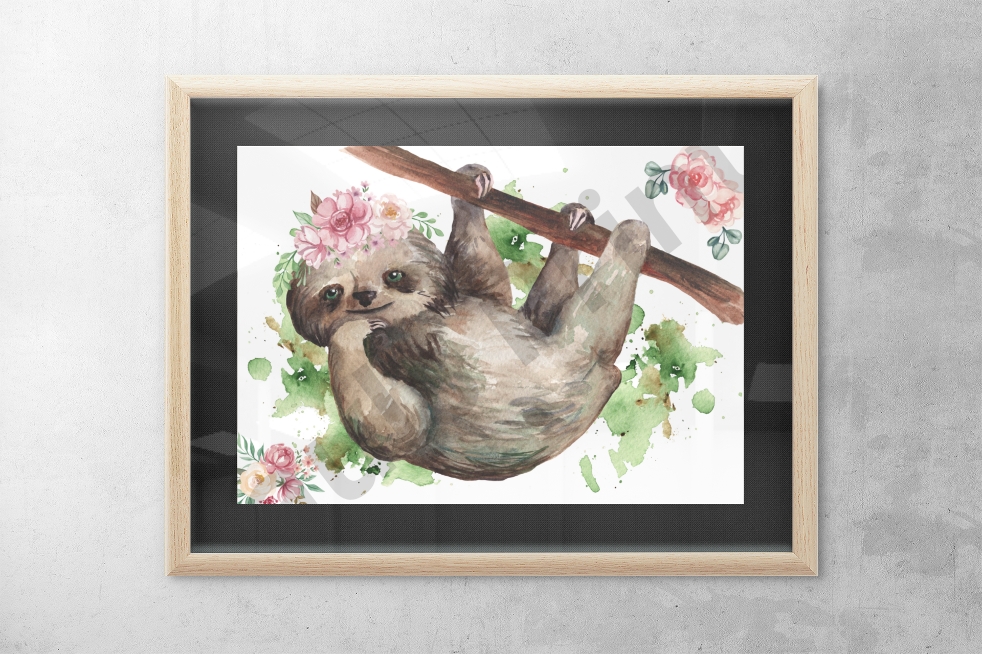 Add charm and personality to any room with this adorable watercolour sloth print, featuring delicate floral accents and soft green tones. Perfect for nurseries, playrooms, or animal-themed décor, this delightful artwork brings a touch of whimsy and relaxation to your home.