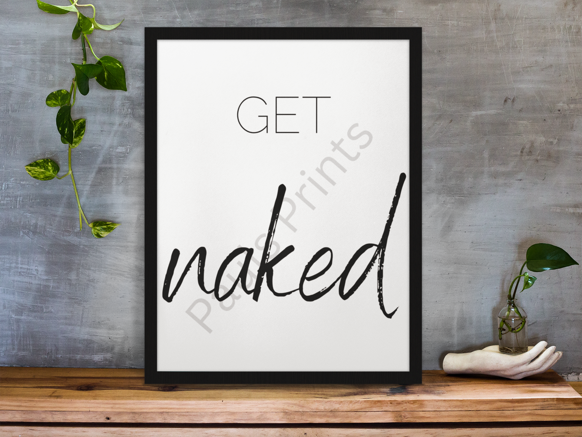 Keep it bold, simple, and unapologetically honest with this “Get Naked” minimalist wall print. Designed with clean typography and a striking handwritten script, this artwork is perfect for bathrooms, bedrooms, dressing rooms, salons, or modern interiors that enjoy a cheeky sense of humour.