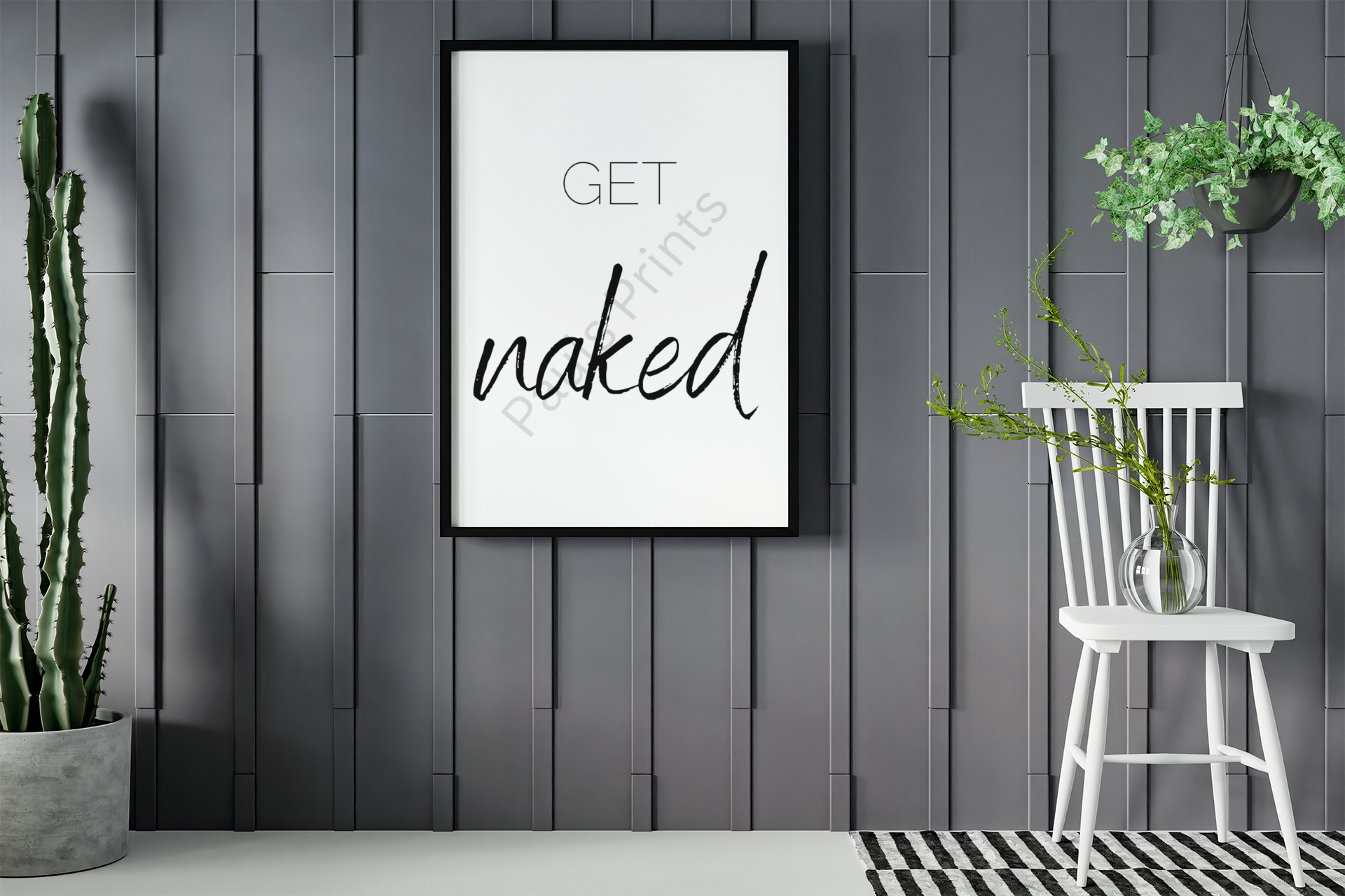Get Naked Wall Art Print – Funny Minimalist Bathroom Poster – Cheeky Quote Print – Modern Typography Bathroom Decor – Bold Black and White Wall Art