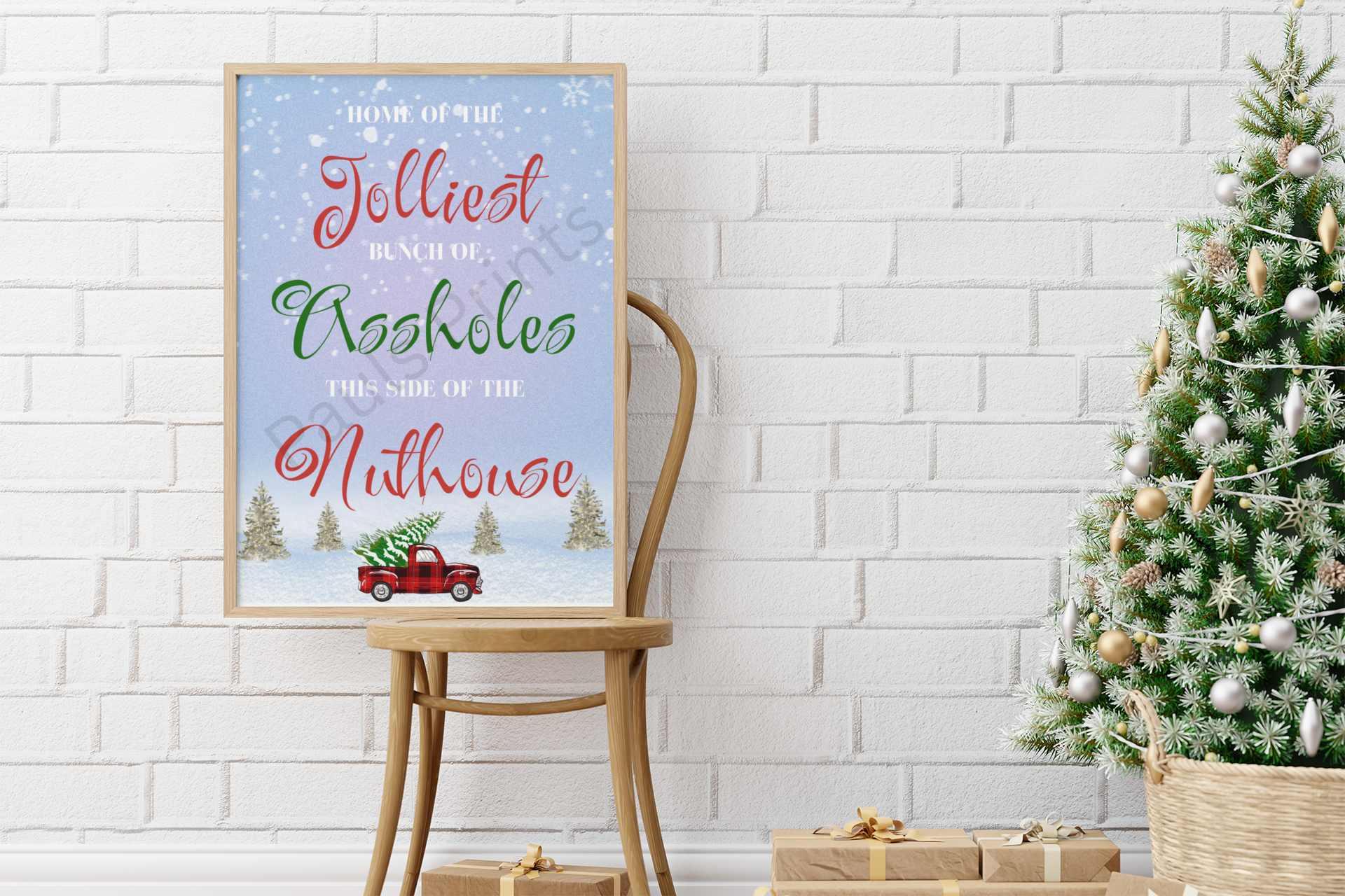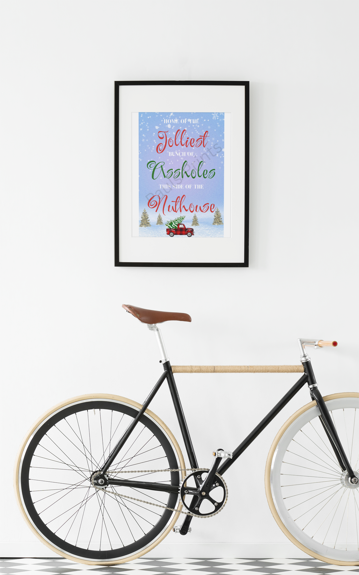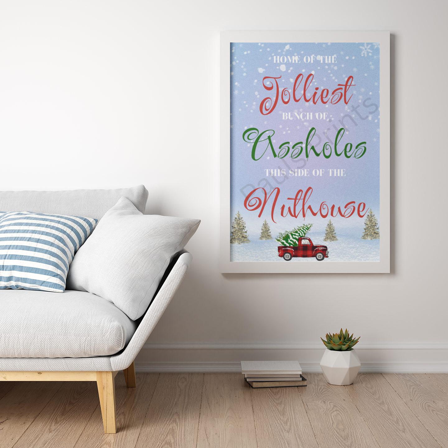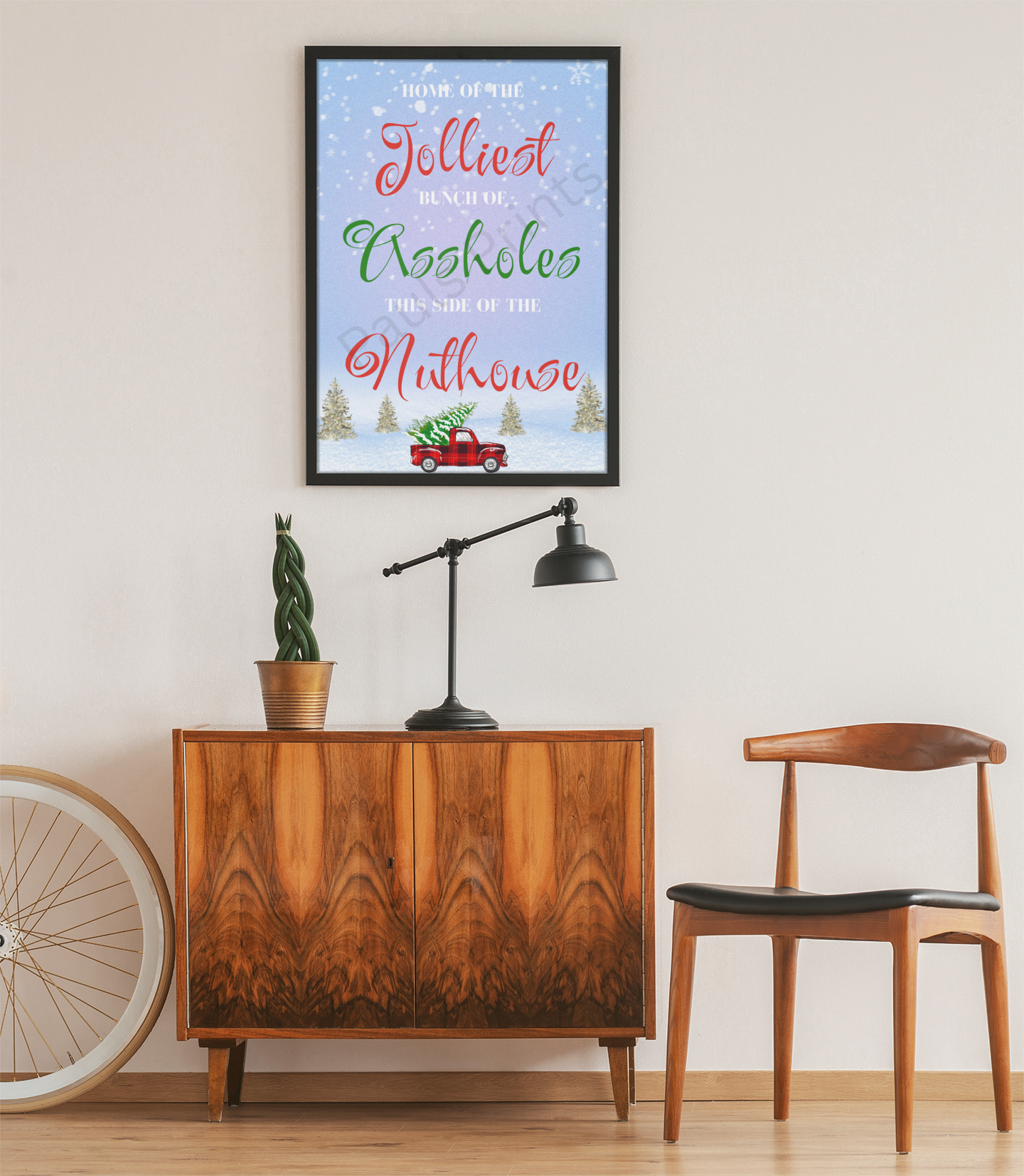 Home of the Jolliest Bunch of A**holes This Side of the Nuthouse – Funny Christmas Wall Art Print – Festive Home Décor