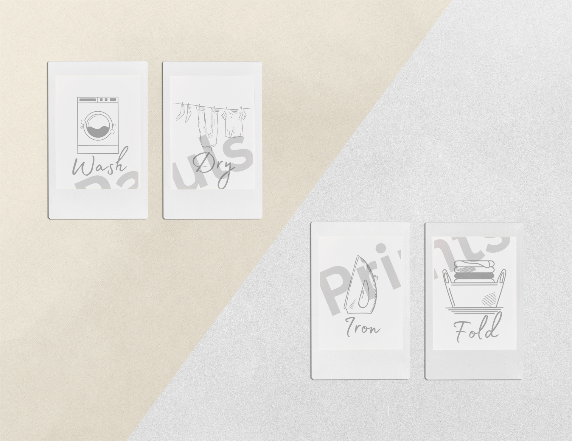 Laundry Room Wall Art Set – “Wash, Dry, Iron, Fold” Prints – Minimalist Black & White Utility Room Decor