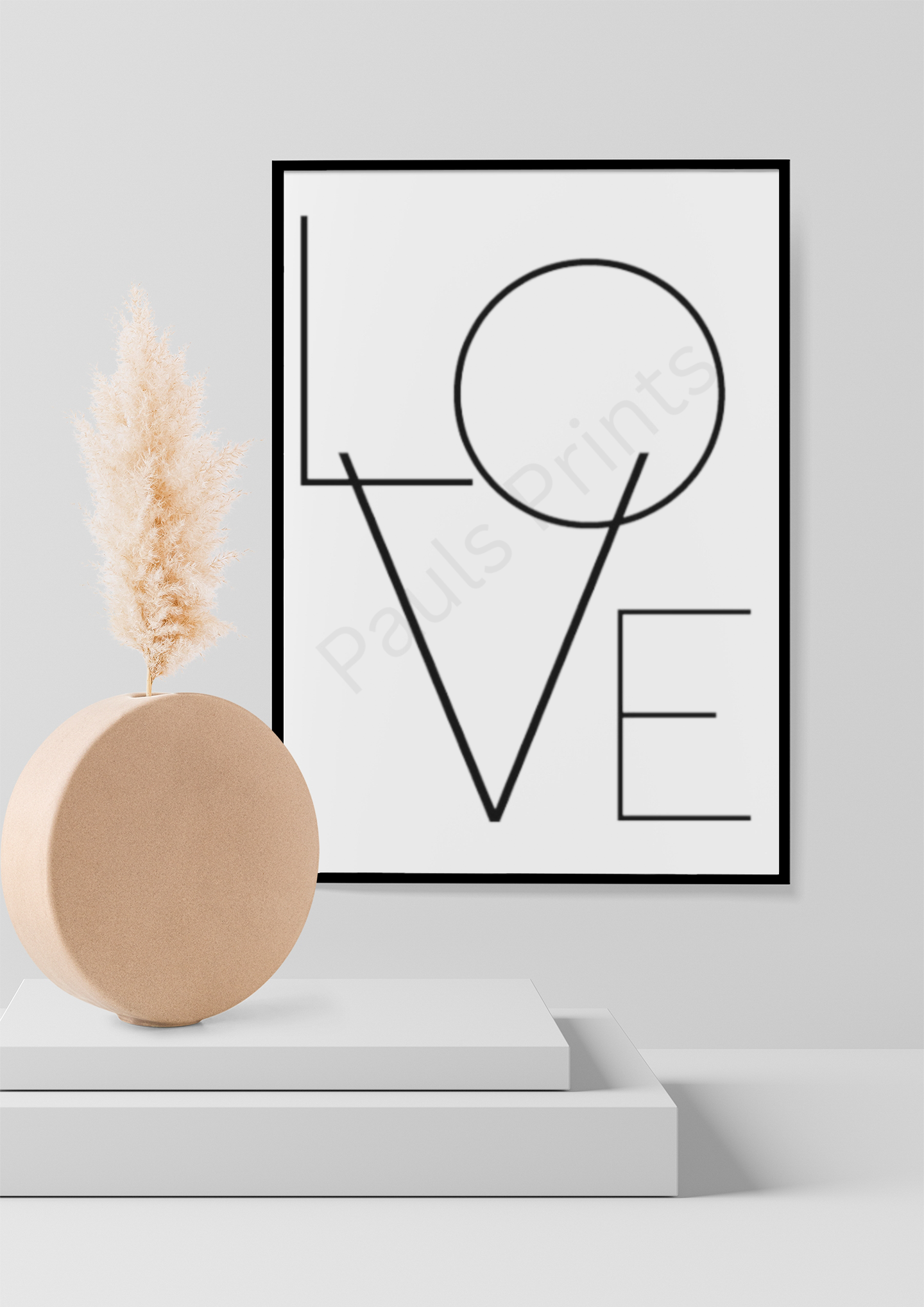 Love is a minimalist typographic wall print that blends modern geometry with timeless meaning. Using clean black lines and a bold circular form, this design reimagines the word love in a striking, contemporary way.