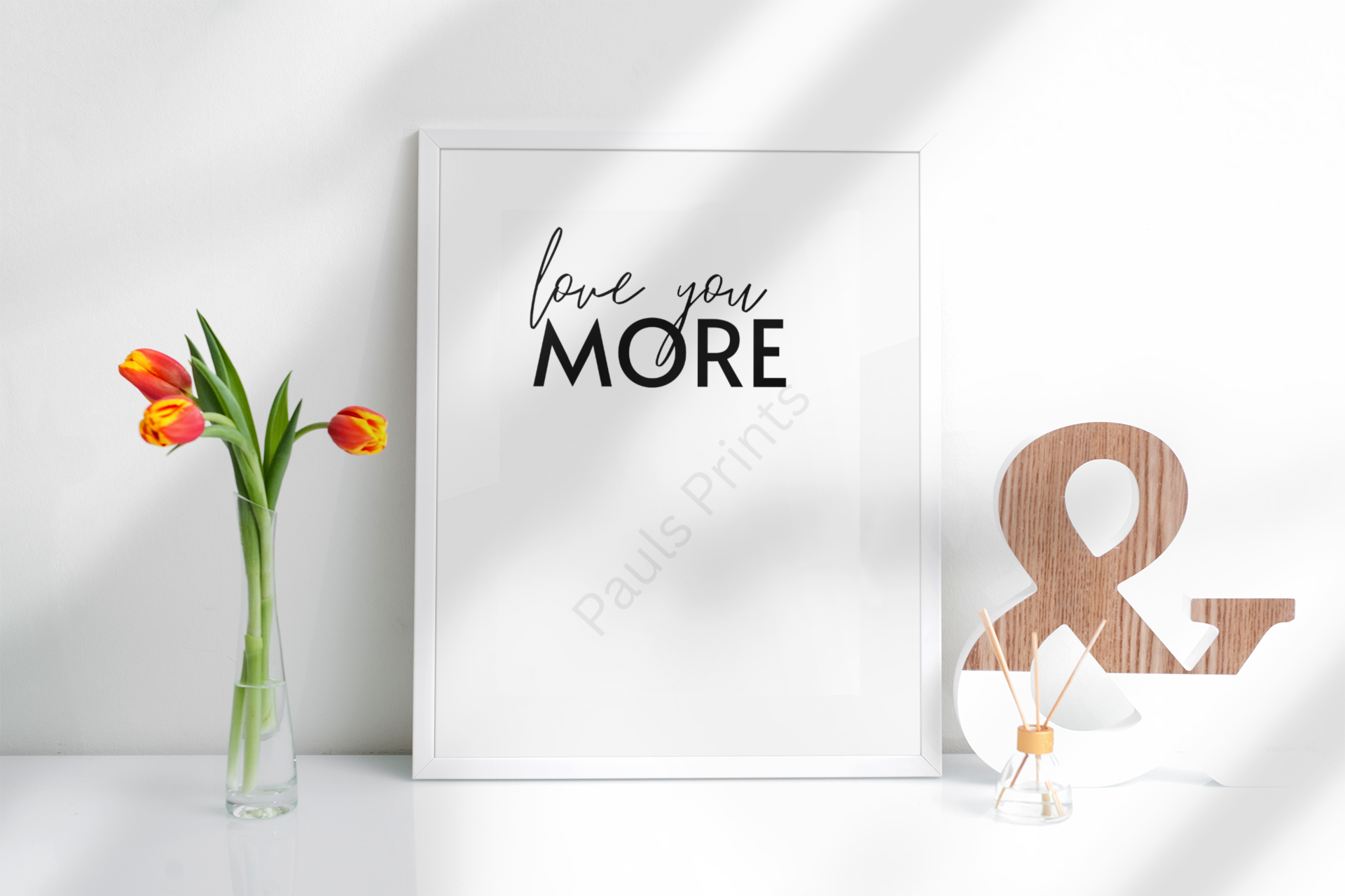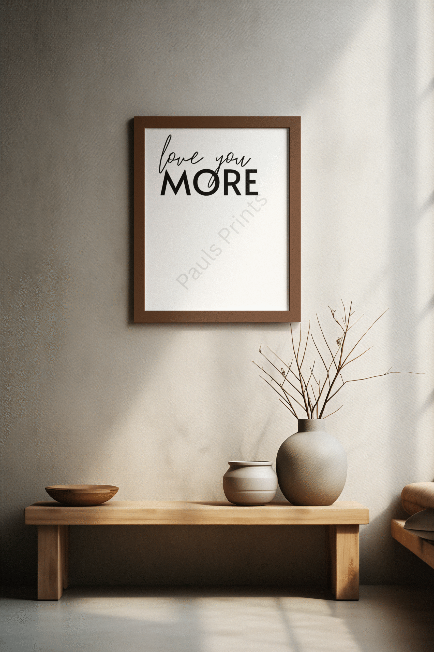 This Love You More wall art print features a timeless mix of handwritten script and bold typography, creating a simple yet meaningful design. Perfect for bedrooms, living spaces, or shared family areas, it brings warmth and connection to any room. With its minimalist black-and-white style, this print complements modern, neutral, and contemporary interiors while delivering a heartfelt message that never dates.