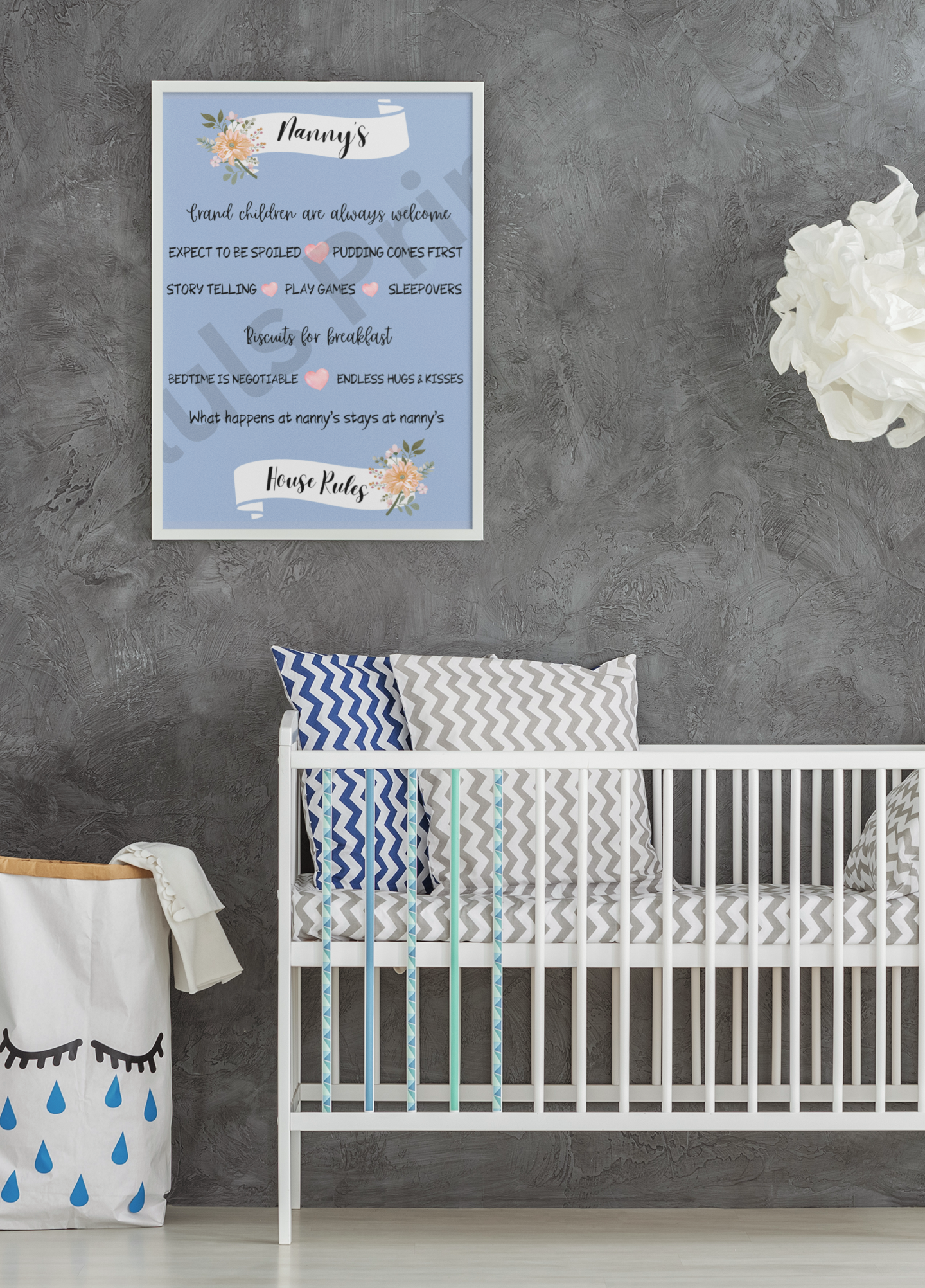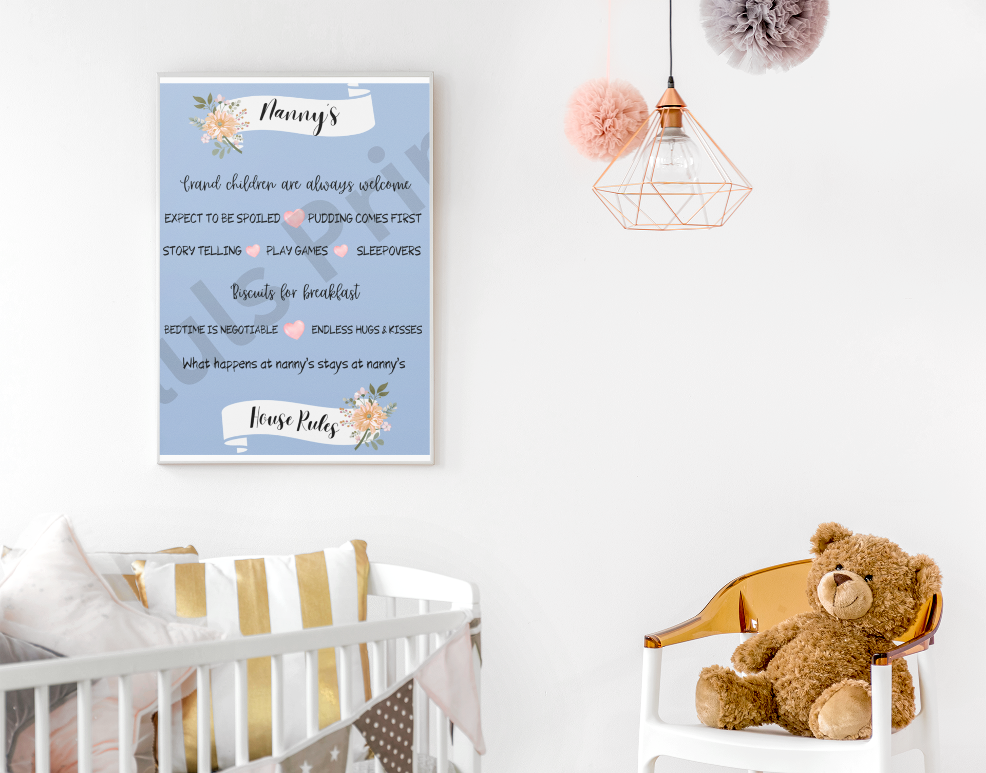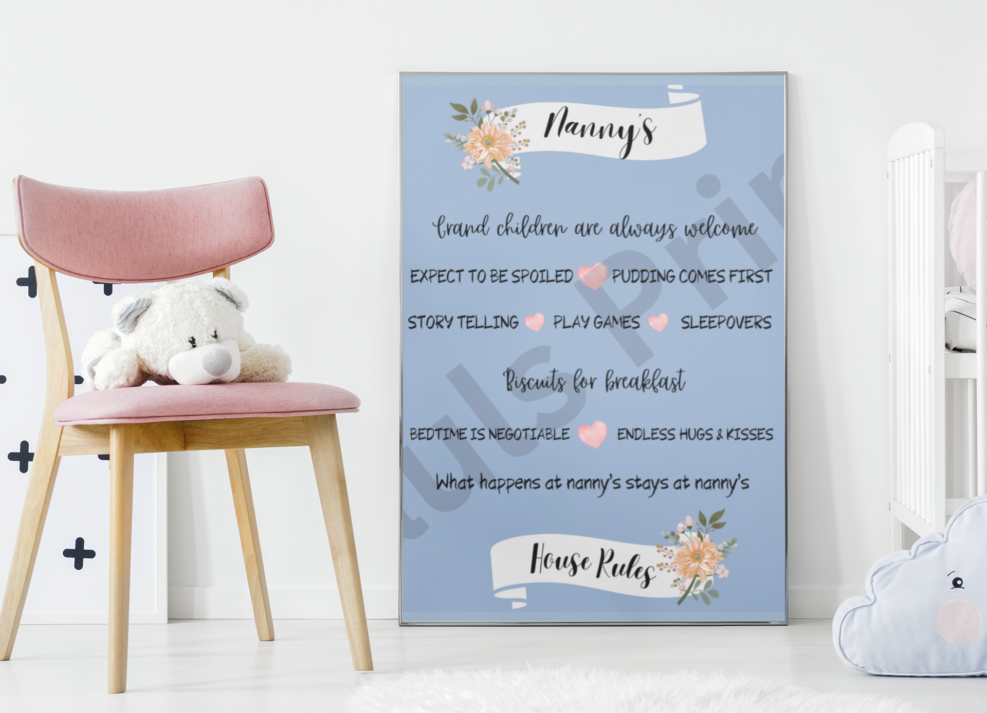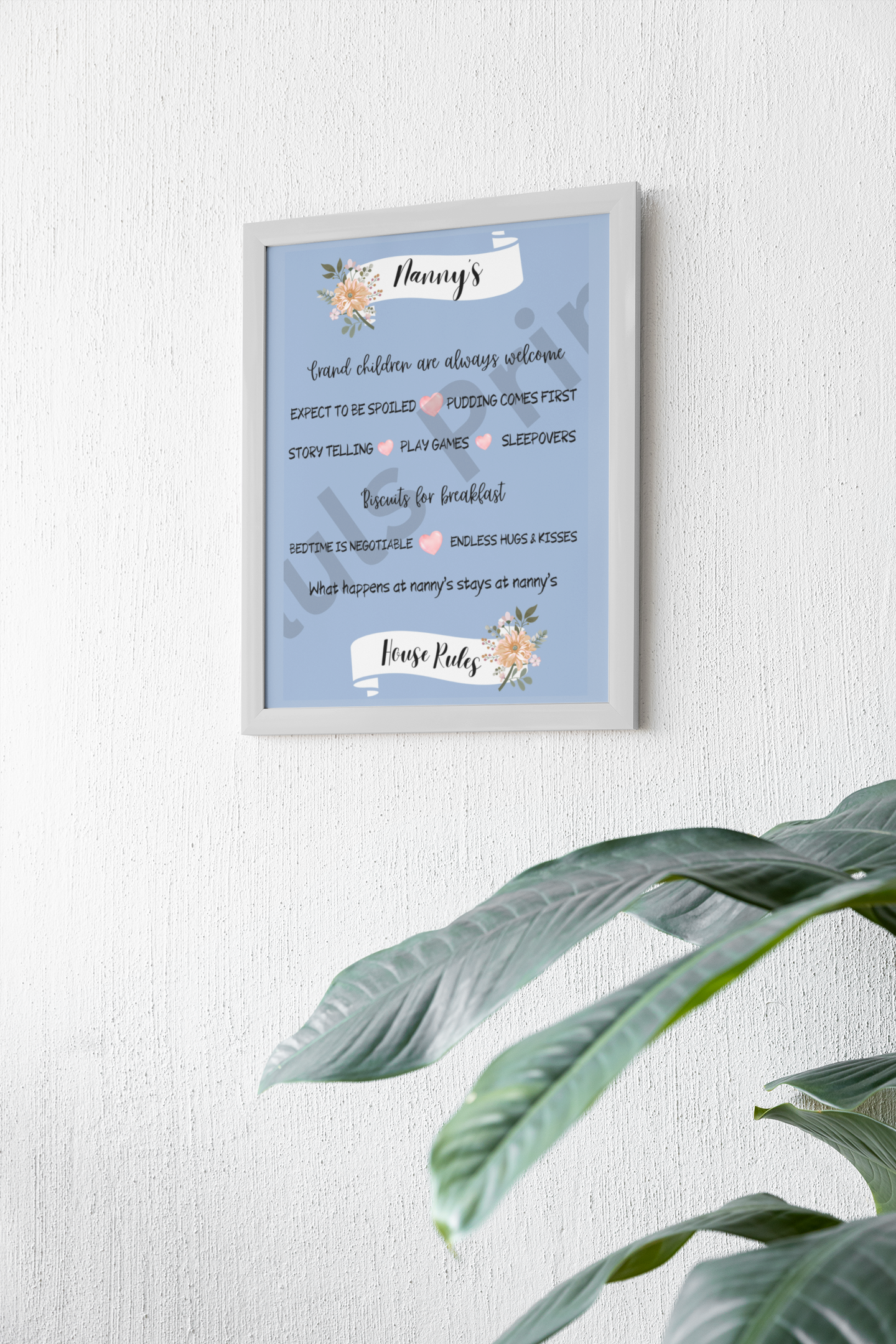 Nanny’s House Rules Print – Funny Grandchildren Welcome Wall Art – Perfect Gift for Nan or Grandma