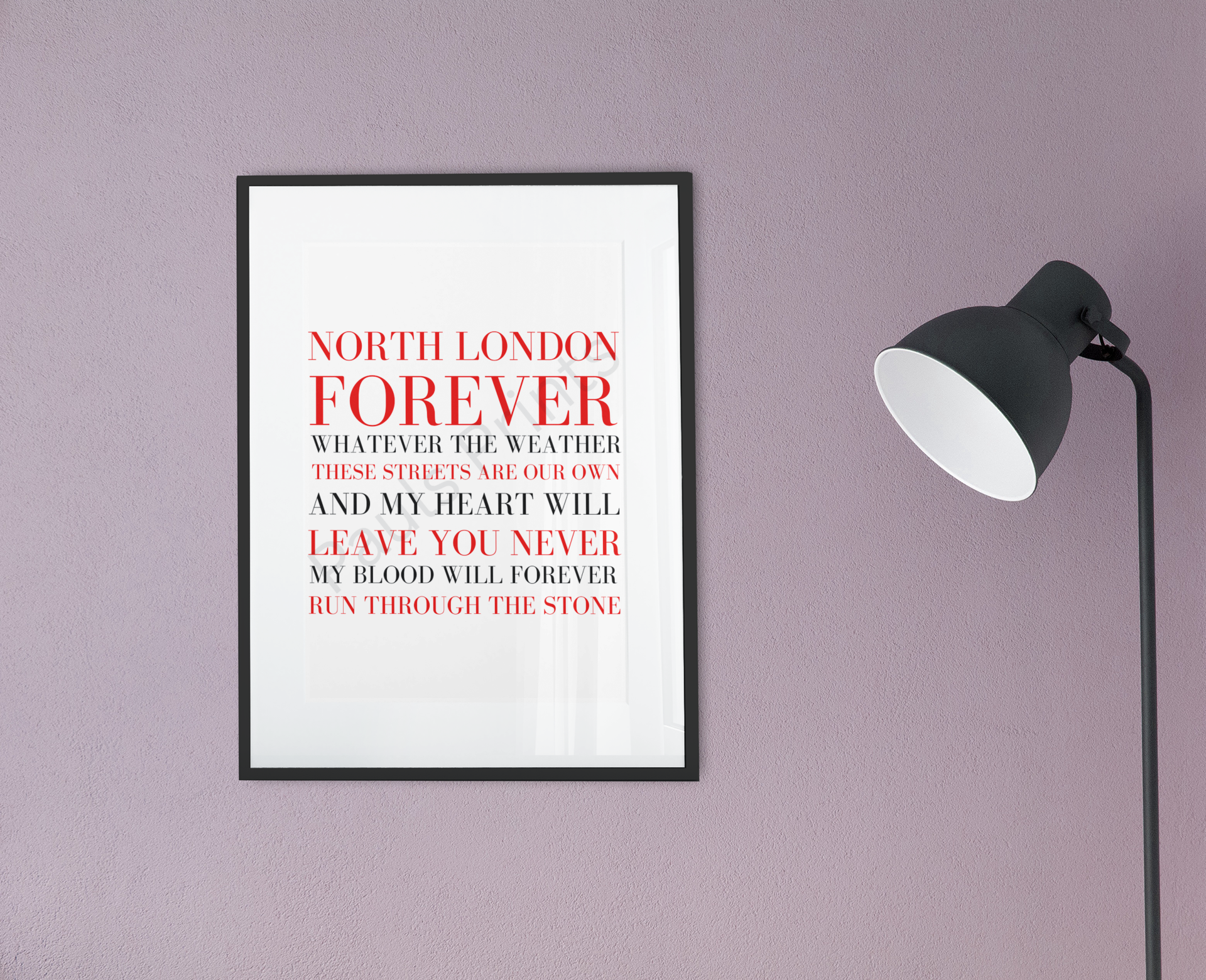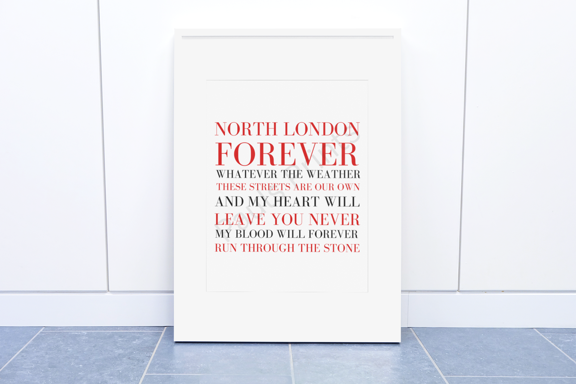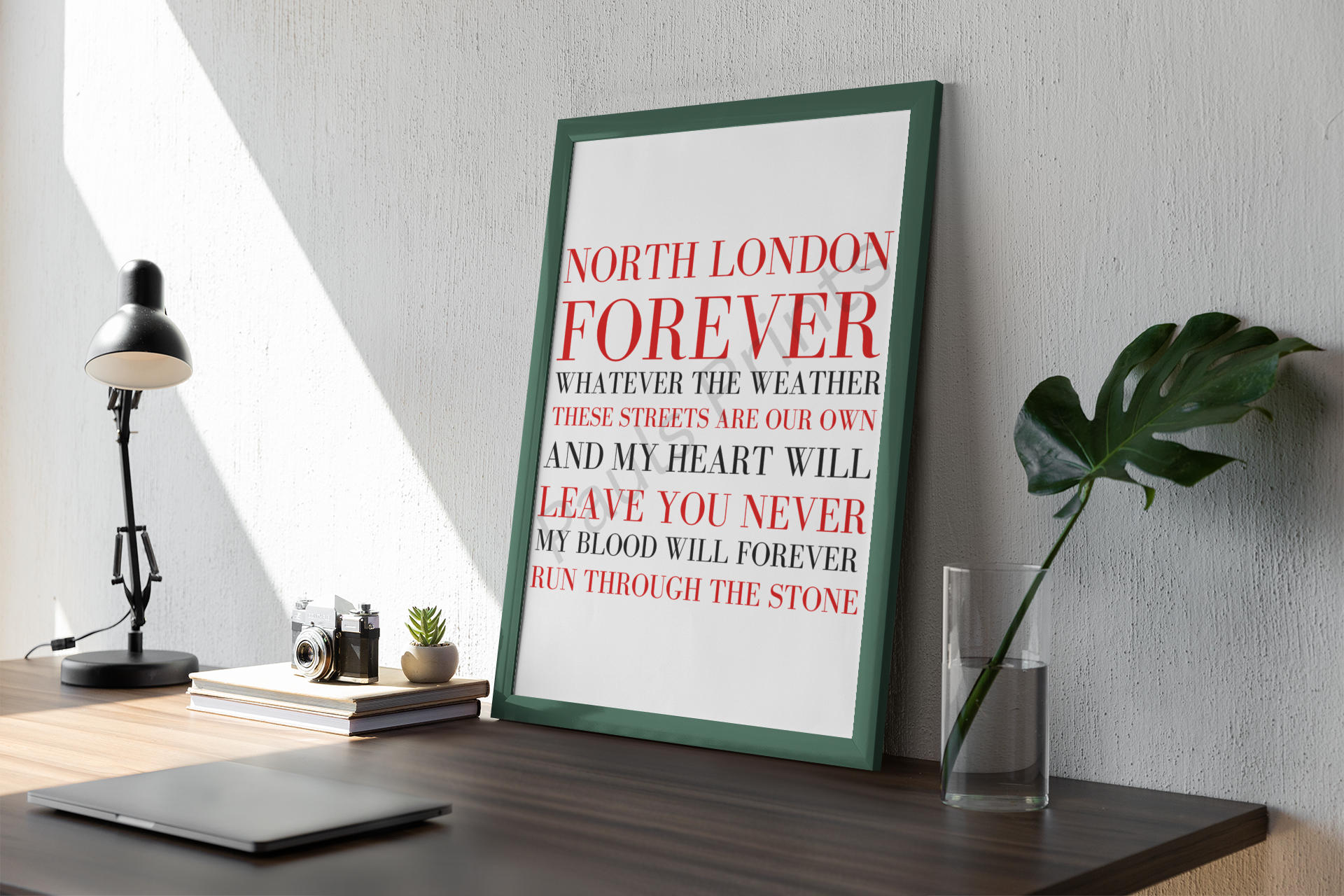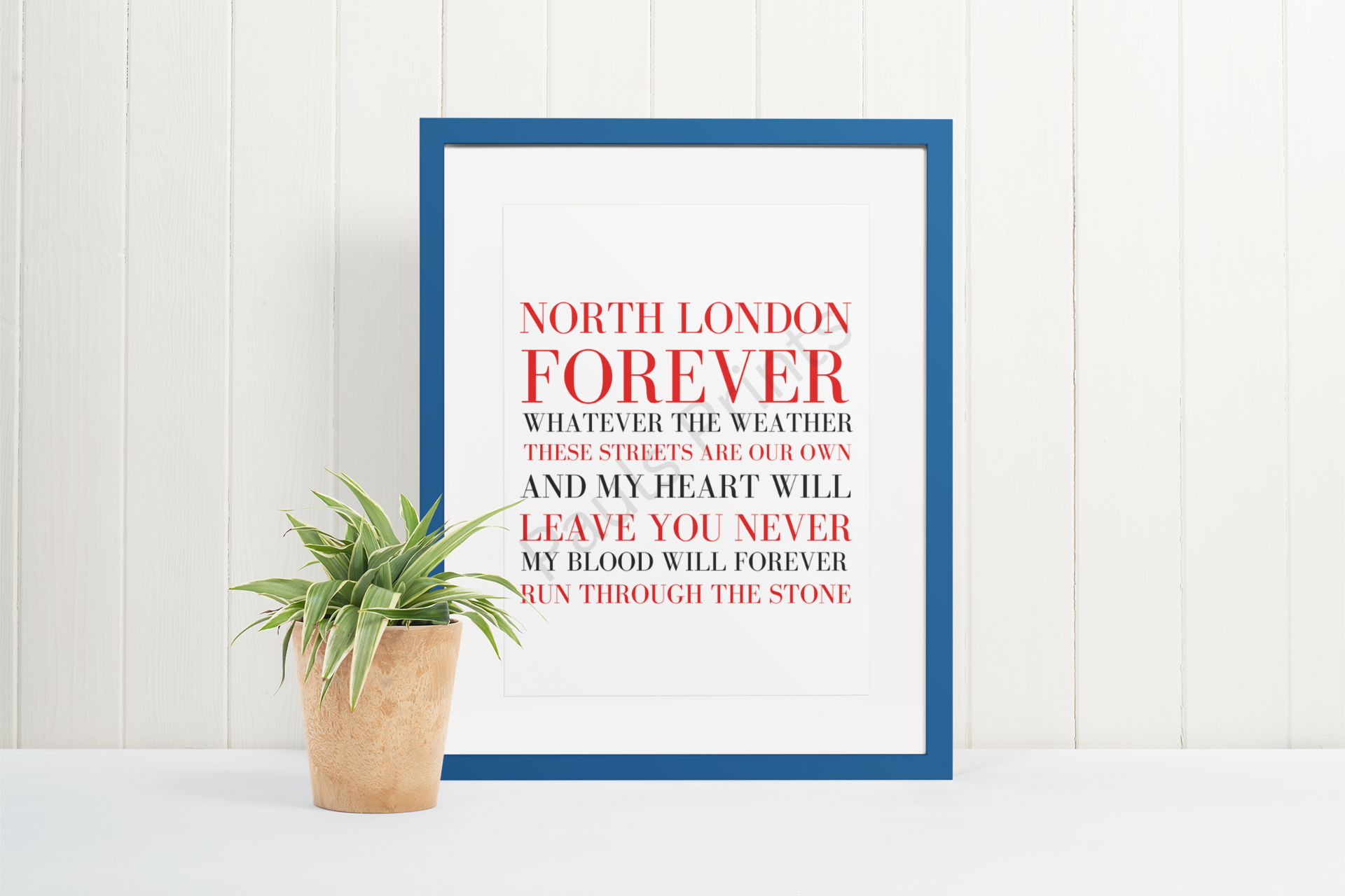 North London Forever Football Chant Typography Wall Art Print – Arsenal Fan Poster