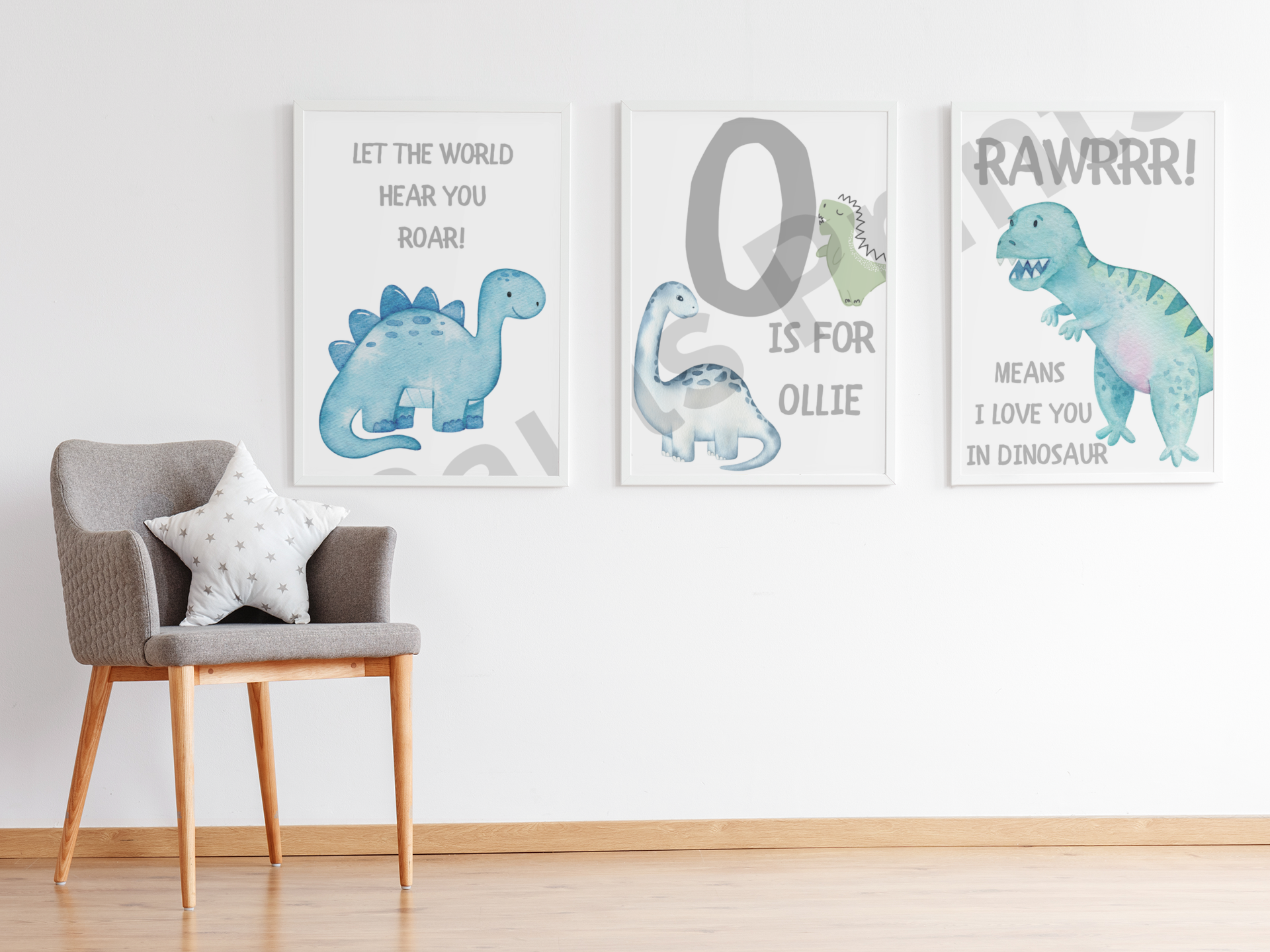 Personalised Dinosaur Nursery Wall Art Set of 3 Prints – Cute Dinosaur Decorations for Kids’ Bedroom or Playroom