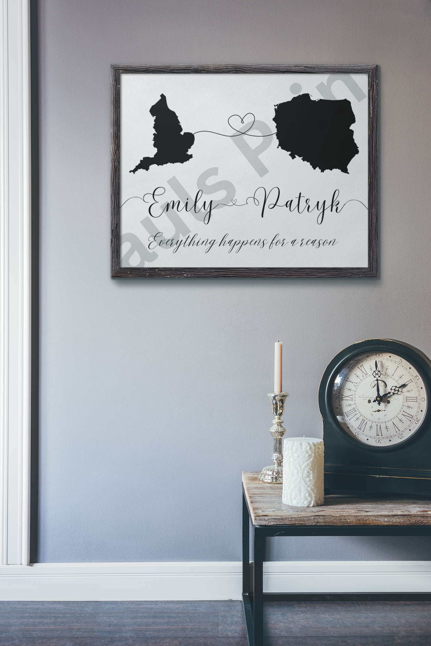 Personalised Long-Distance Relationship Map Print – Custom Names & Quote