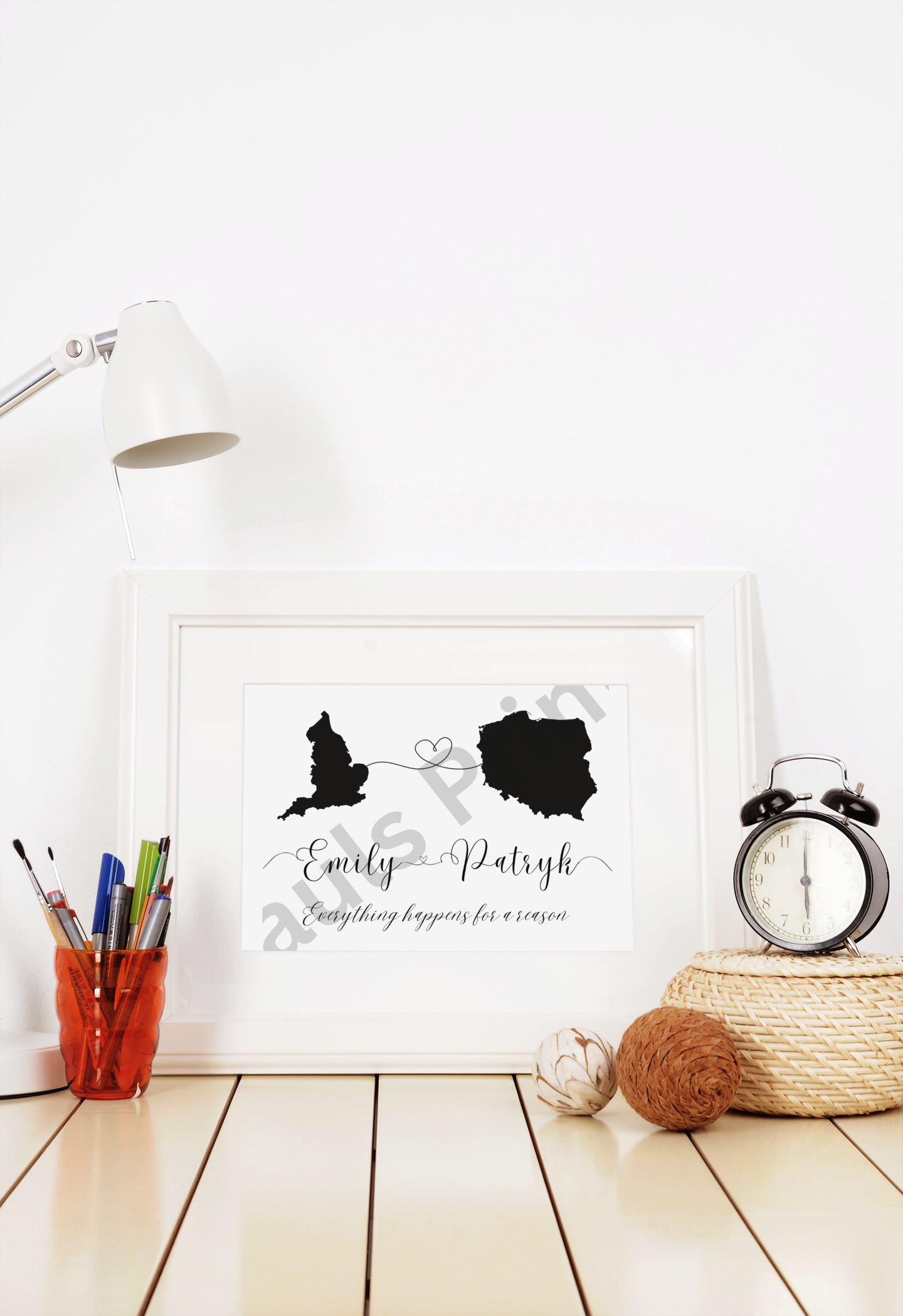Celebrate love that knows no borders with this elegant map print, featuring the countries or regions of two special people connected by a heart line. Personalised with your names and a meaningful quote, it’s the perfect keepsake for couples in long-distance relationships or those with international love stories.