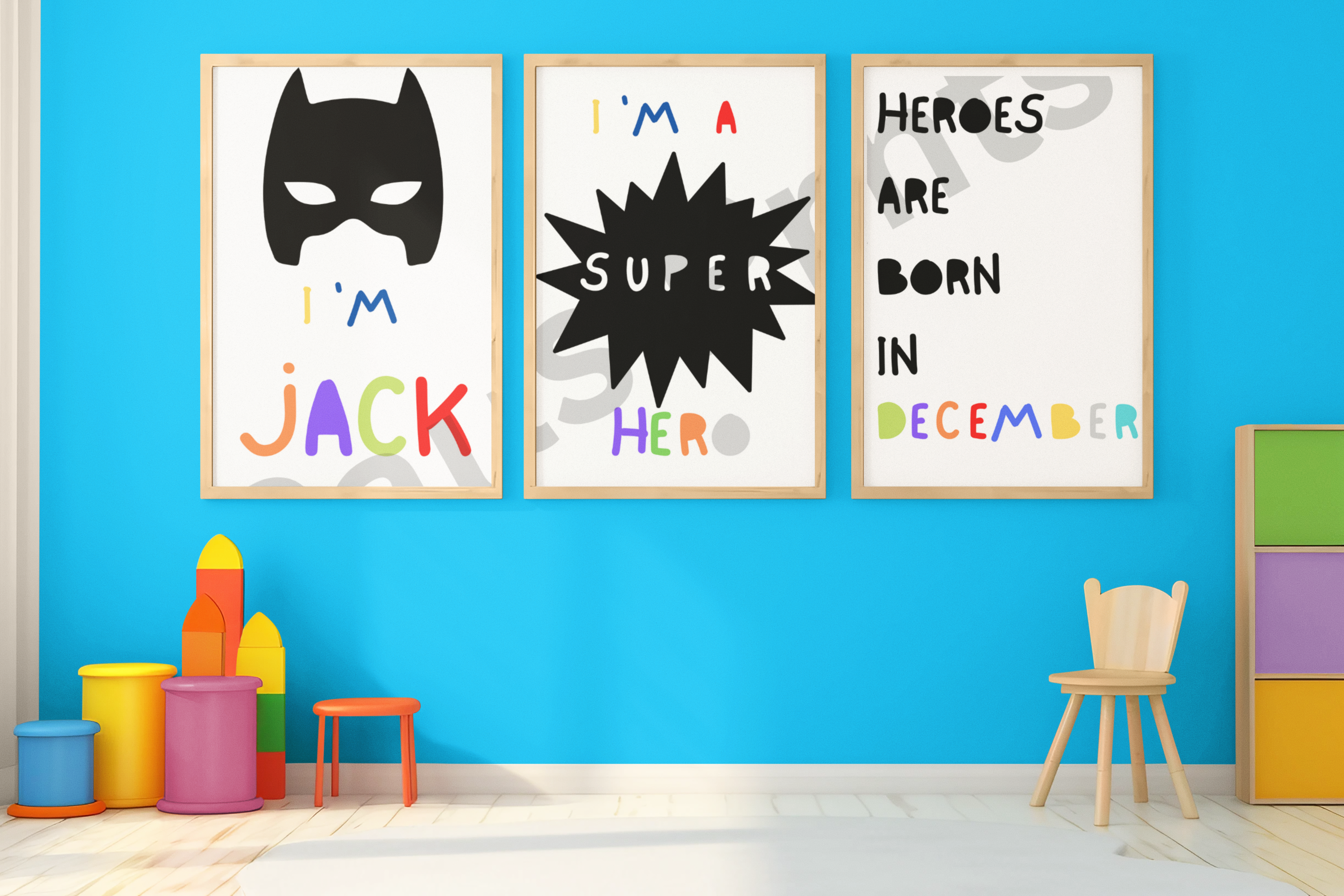 Personalised Superhero Kids Wall Art – December Birthday Edition
