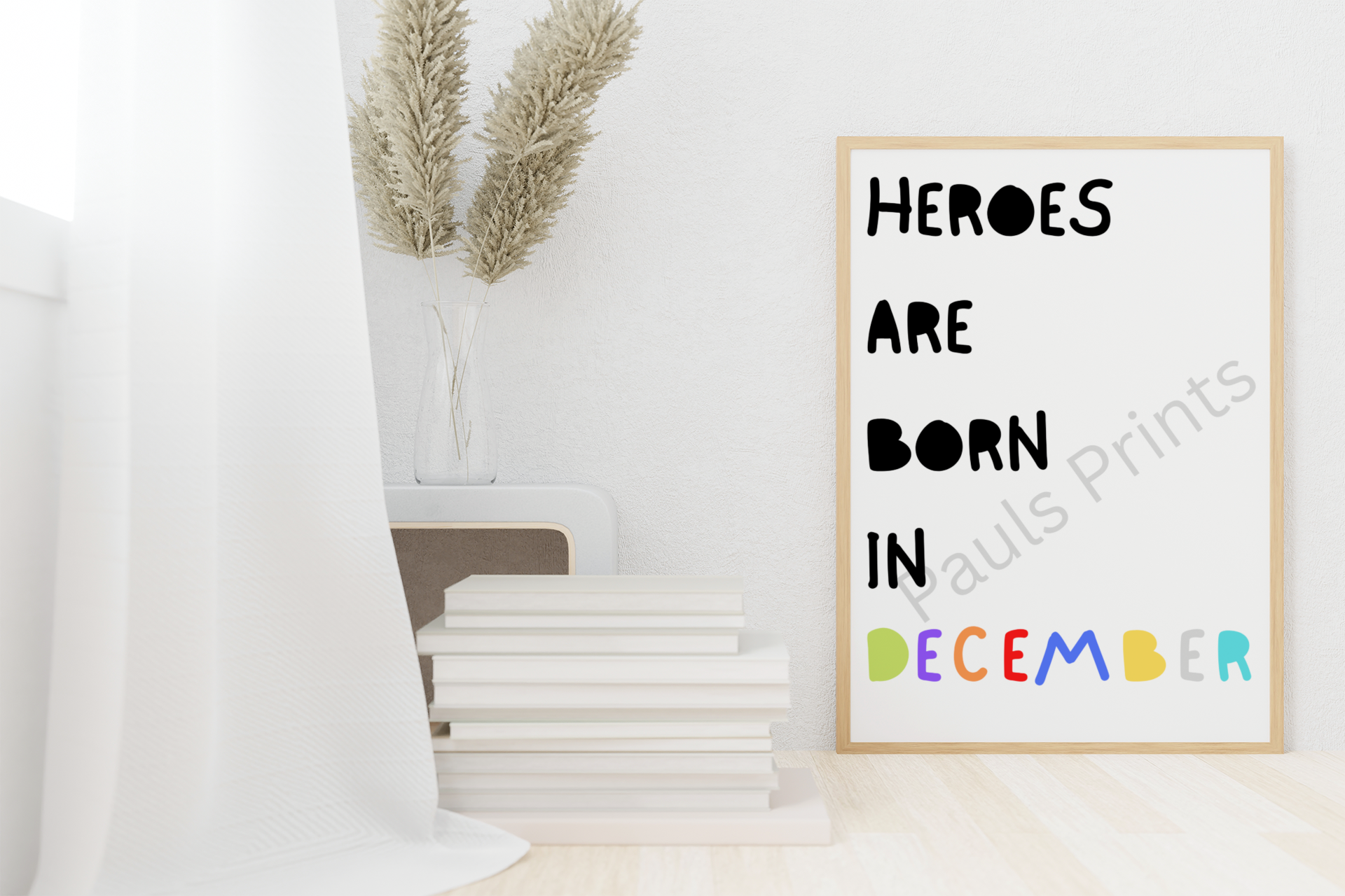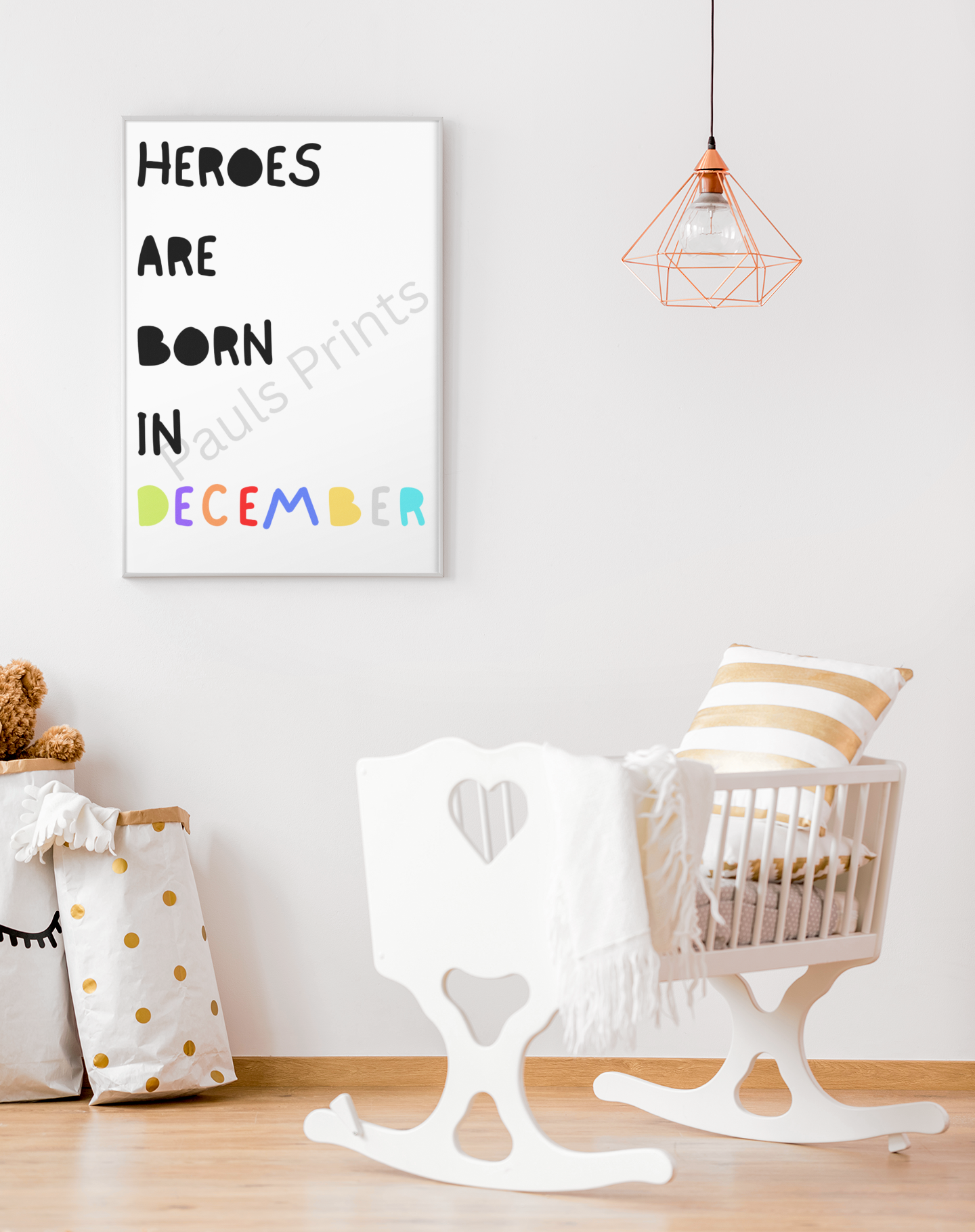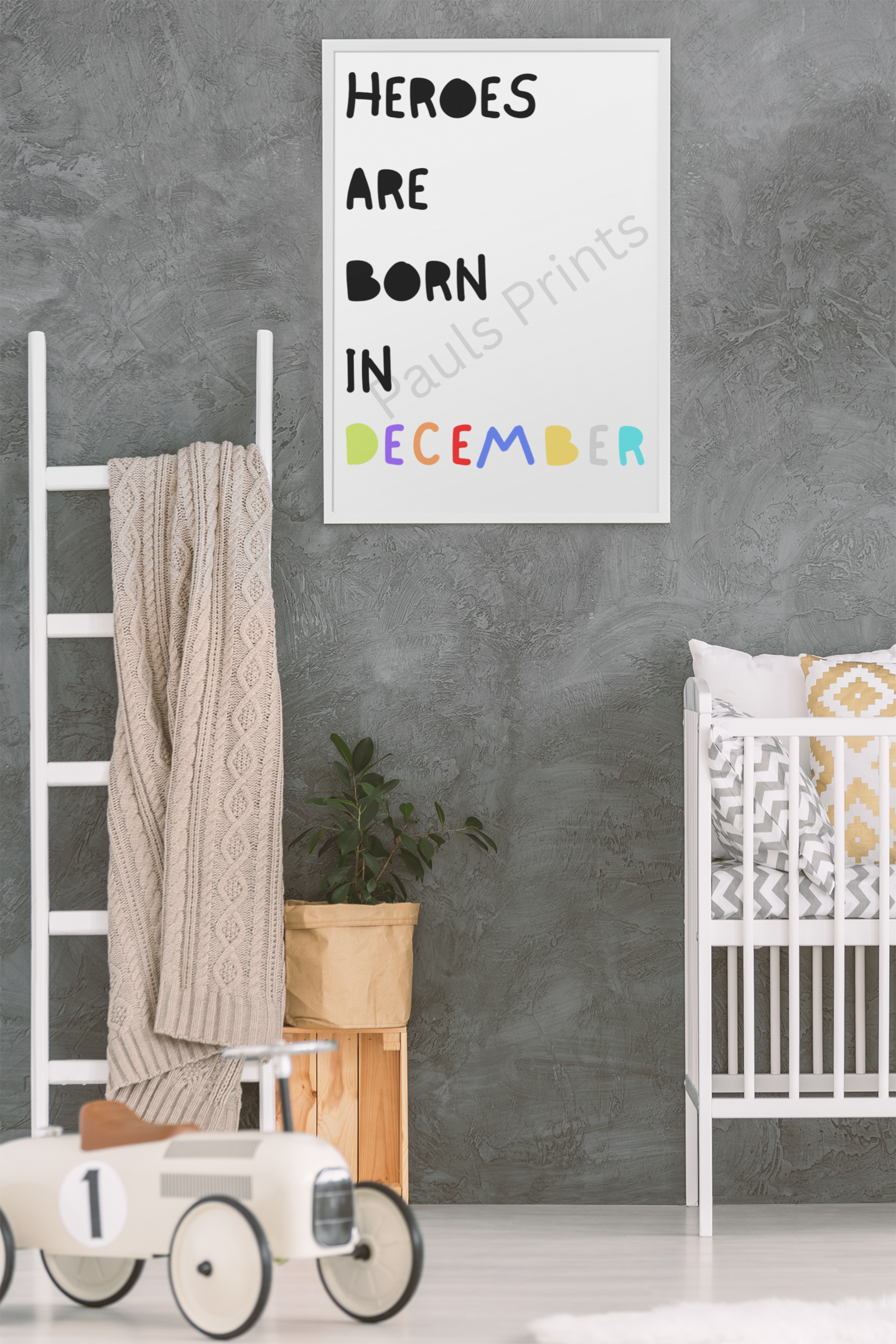 Fun and uplifting superhero-themed personalised print featuring the phrase “Heroes Are Born in [Name]”, finished with bright, colourful lettering that stands out beautifully in any child’s bedroom, nursery or playroom. Designed to inspire confidence, imagination and a sense of adventure, this playful wall art makes a bold statement and celebrates your child as the hero of their own story. A perfect gift for birthdays, Christmas or room makeovers, and a cheerful piece that adds colour, personality and positivity to your child’s space while creating a special, custom feel just for them.