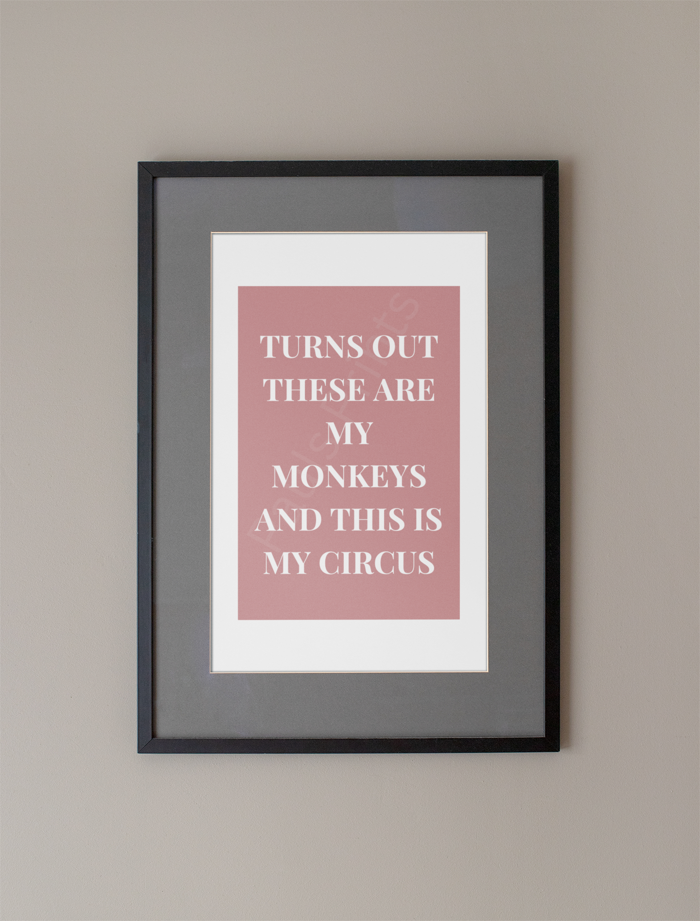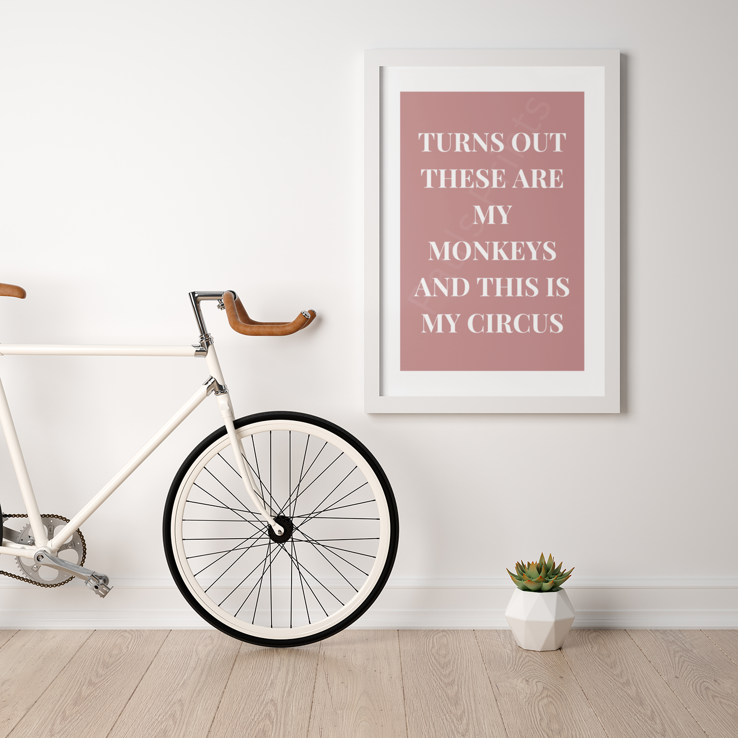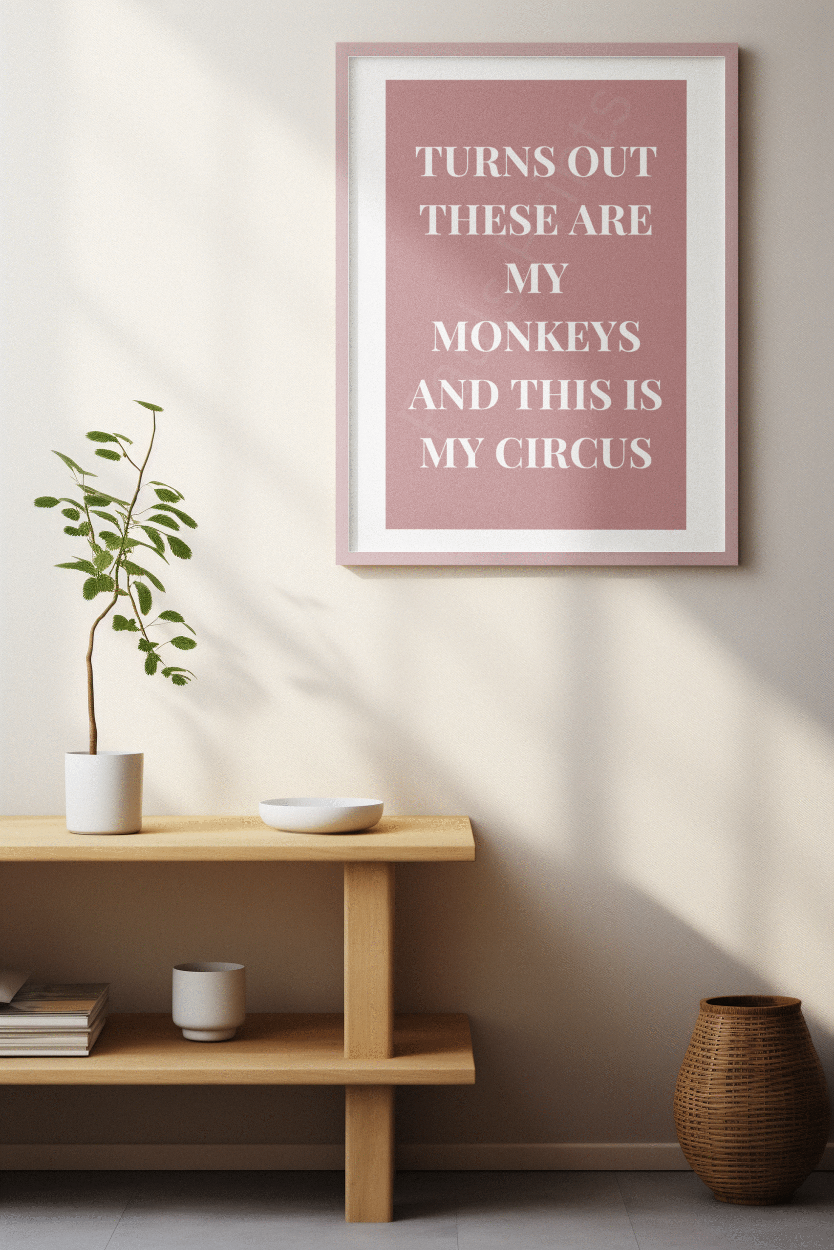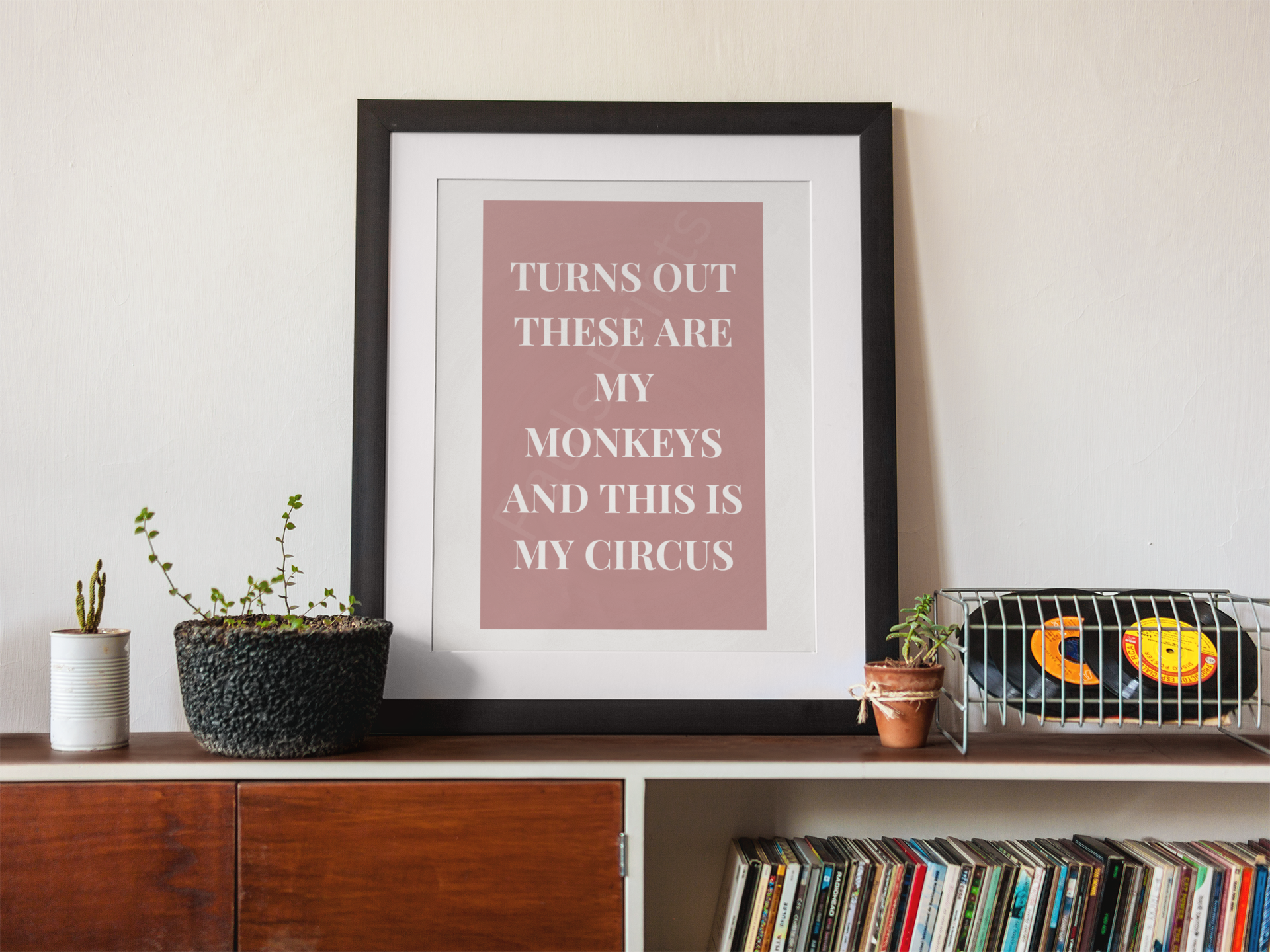 Turns Out These Are My Monkeys and This Is My Circus Print – Funny Quote Wall Art – Home Office, Mum Life, Family Humour Poster